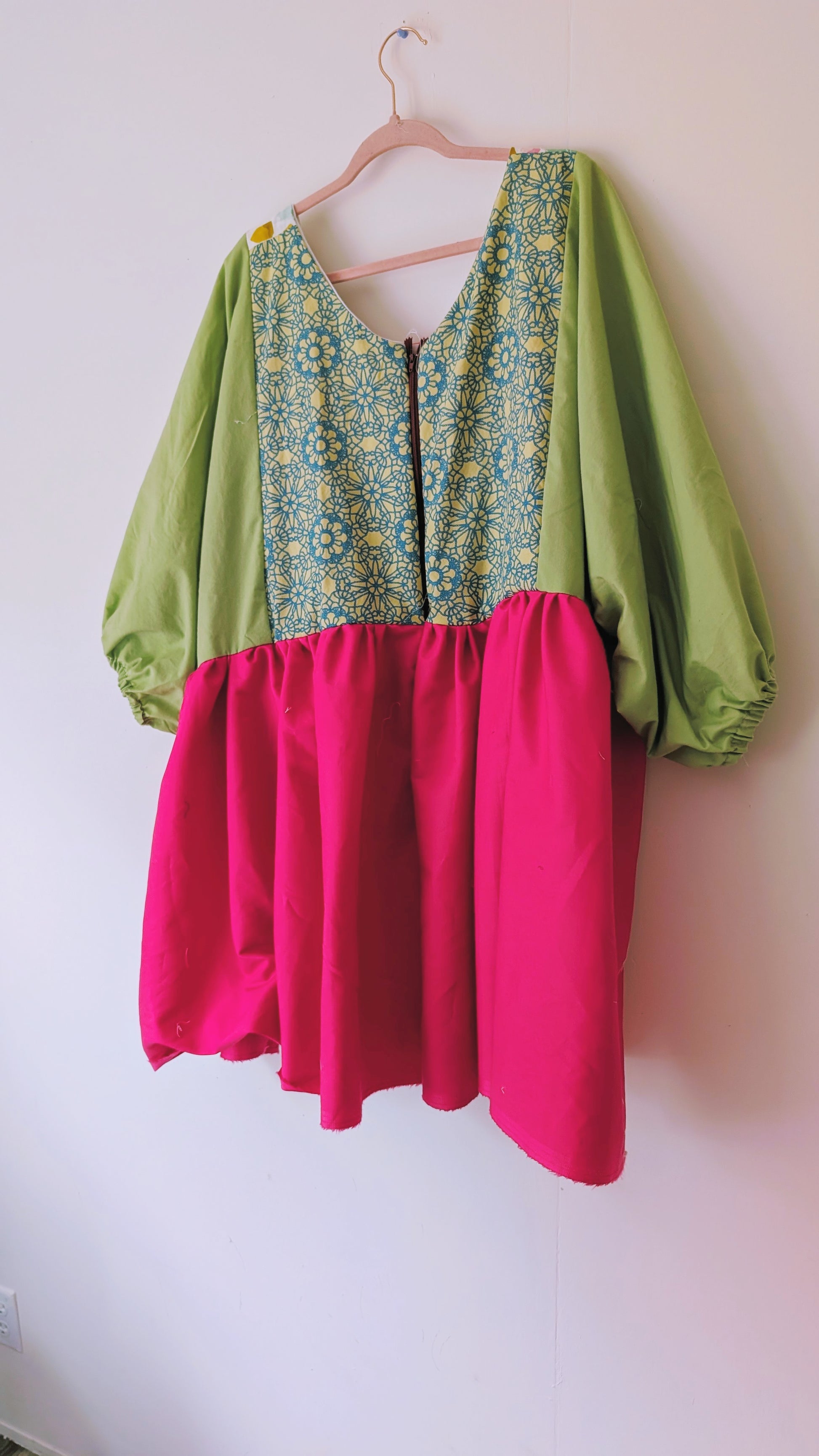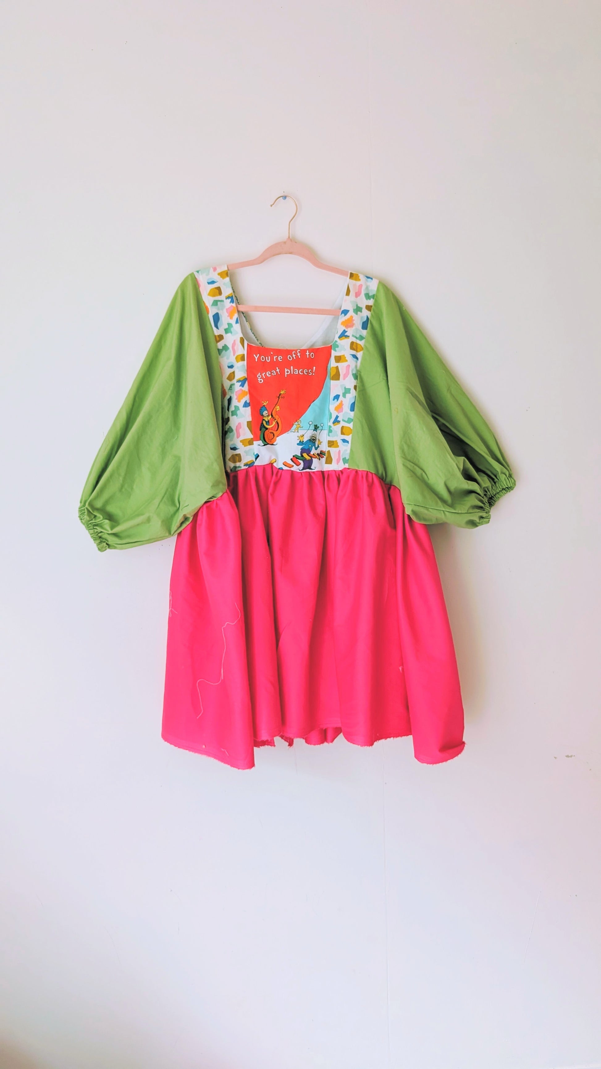 Made with vintage bed sheets, one of a kind.