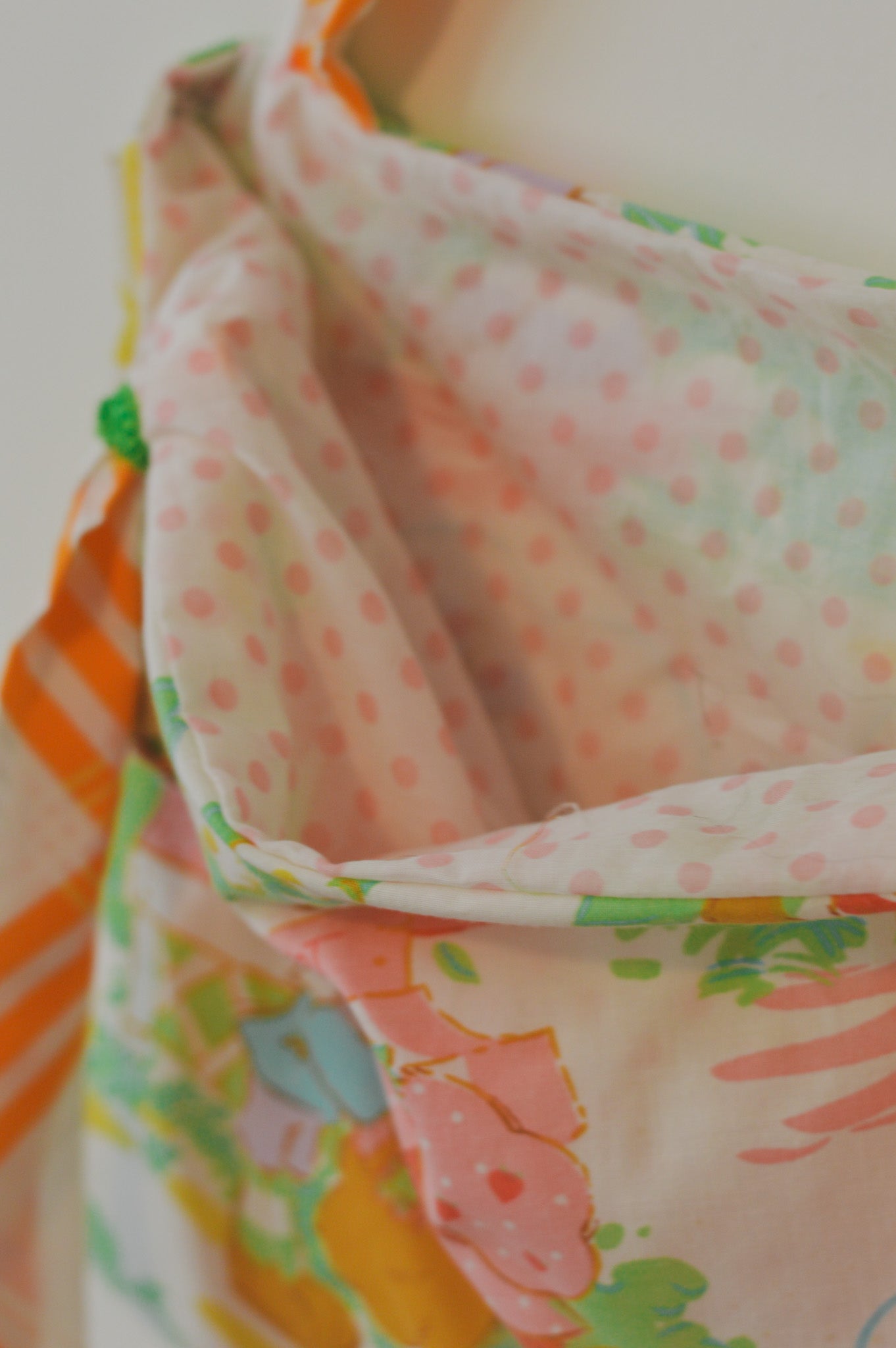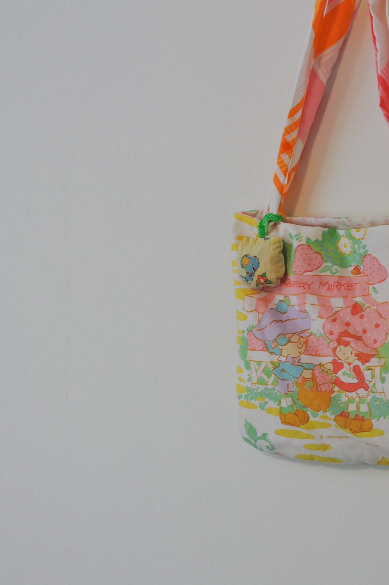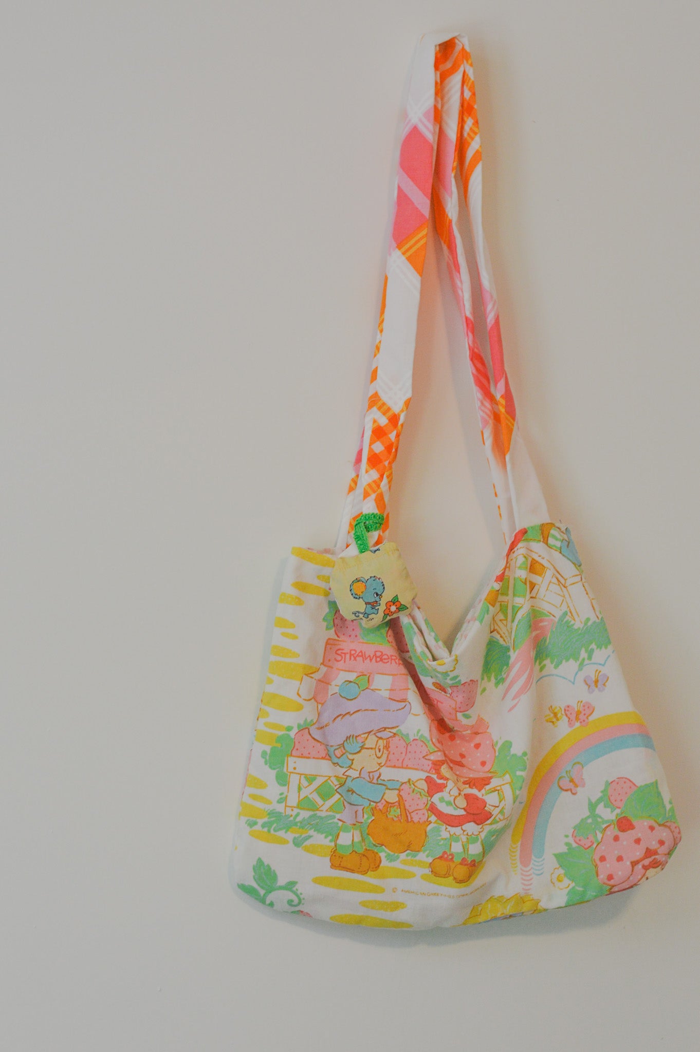 Made with vintage bed sheets, one of a kind. Comes with bag charm.